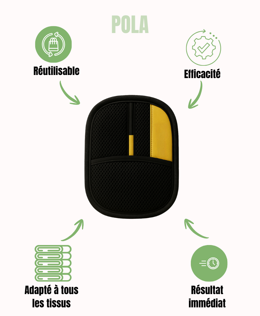 Pola est un gant collecteur de poils ultra-efficace qui attire et retient facilement les poils d’animaux sur les vêtements, tissus et meubles.